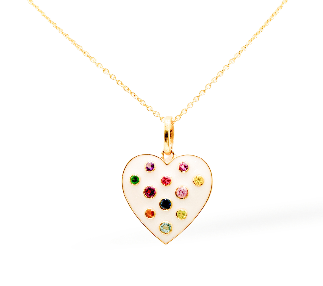 A celebration of color and craftsmanship, the Amour Chromatique Pendant radiates playful sophistication. Its 0.60 ct multicolor stone catches the light in every hue, beautifully contrasted by a sleek 14K yellow gold setting. Designed to captivate, this pendant embodies modern elegance with a touch of artistic flair.