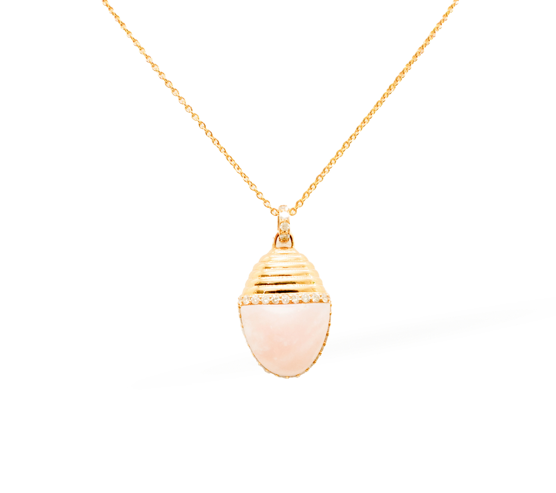 Materials: 14K Yellow Gold, Pink Opal, Diamond