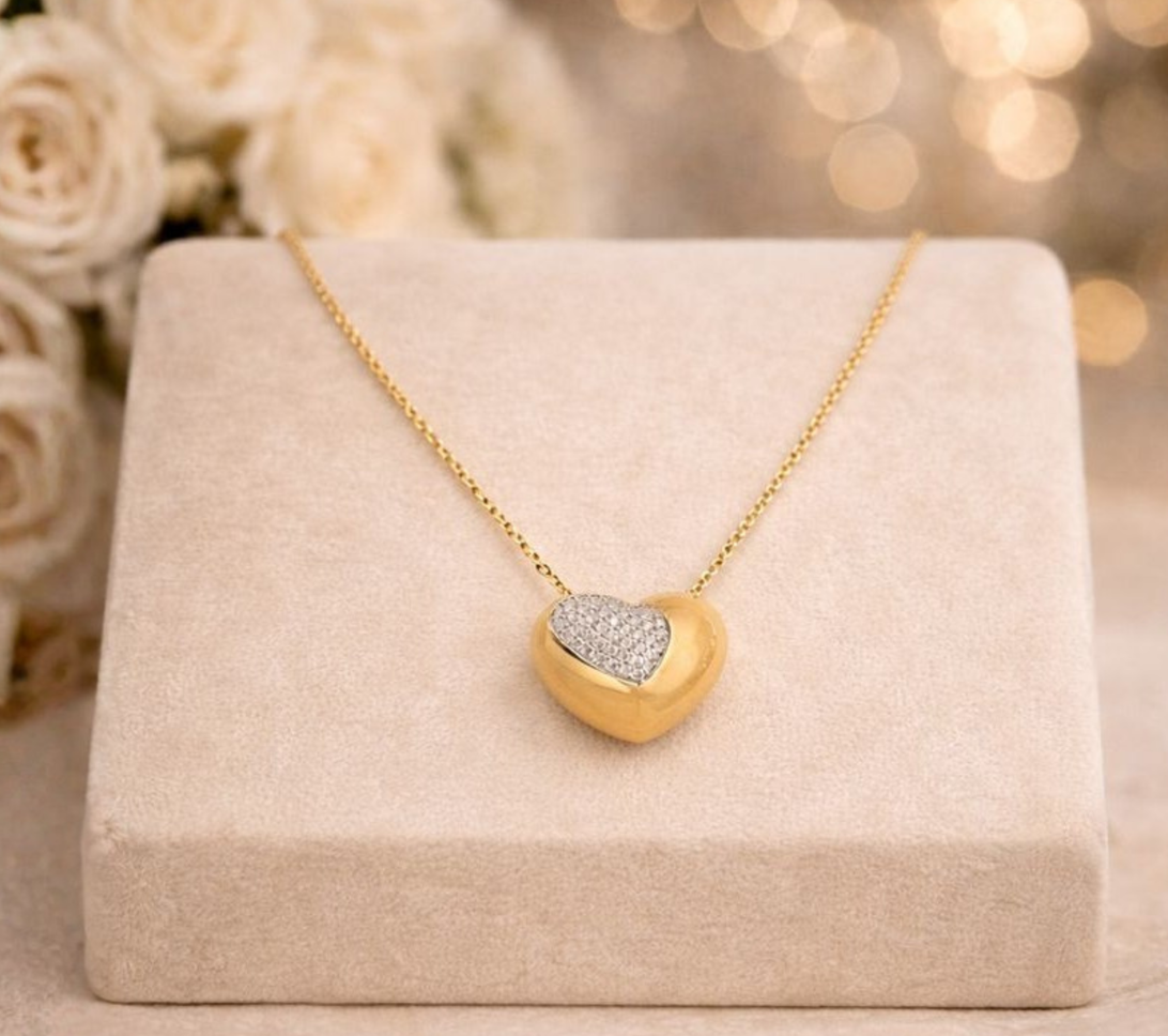 Timeless and tender, the Heart Diamond Pendant Necklace captures the beauty of love in its purest form. Crafted in luminous 14K gold, the softly sculpted heart is crowned with a pavé diamond heart that adds a gentle, radiant sparkle.