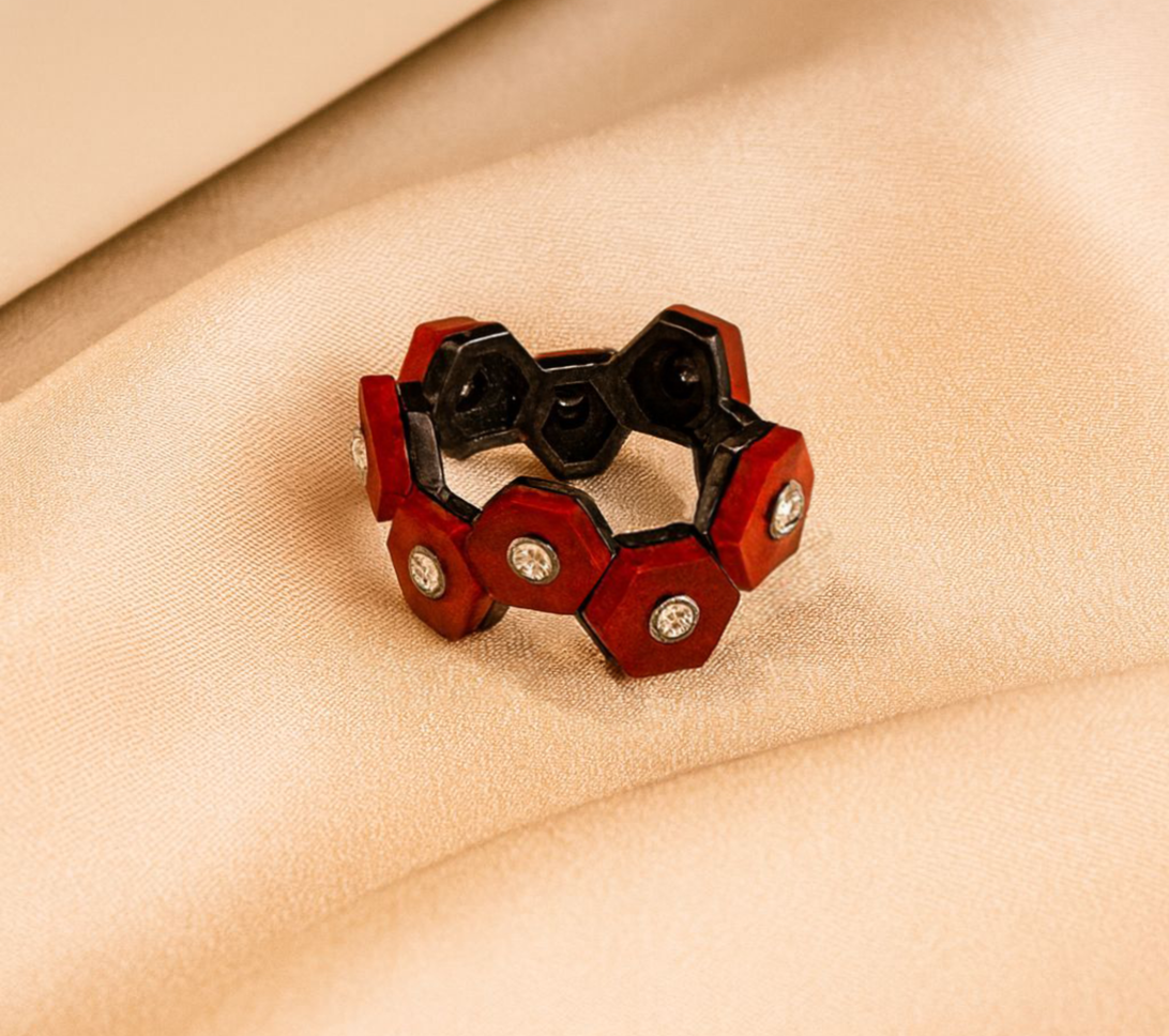 Grounded in warmth and modern geometry, the Hexagon Tiger Eye & Diamond Ring brings together the natural glow of tiger eye with the refined brilliance of white diamonds. Each hexagonal link reveals the stone’s signature chatoyance shifting golden and caramel tones that catch the light with a hypnotic, silky sheen.