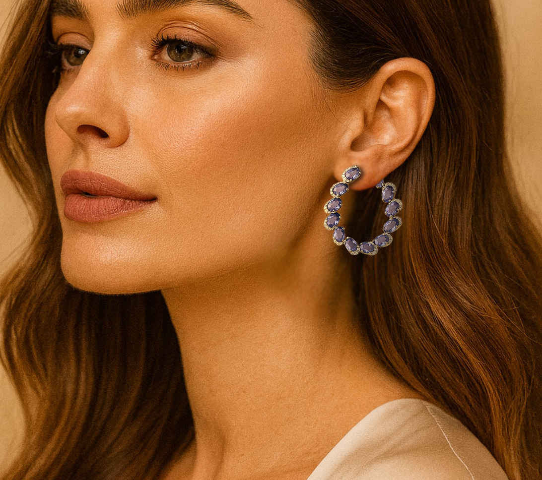 Inspired by the quiet glow of a midnight sky, the Luna d’Azur Earrings pair richly hued blue sapphires with the radiant sparkle of diamonds. Their luminous contrast and elegant curvature create a look that feels celestial, refined, and timelessly captivating.