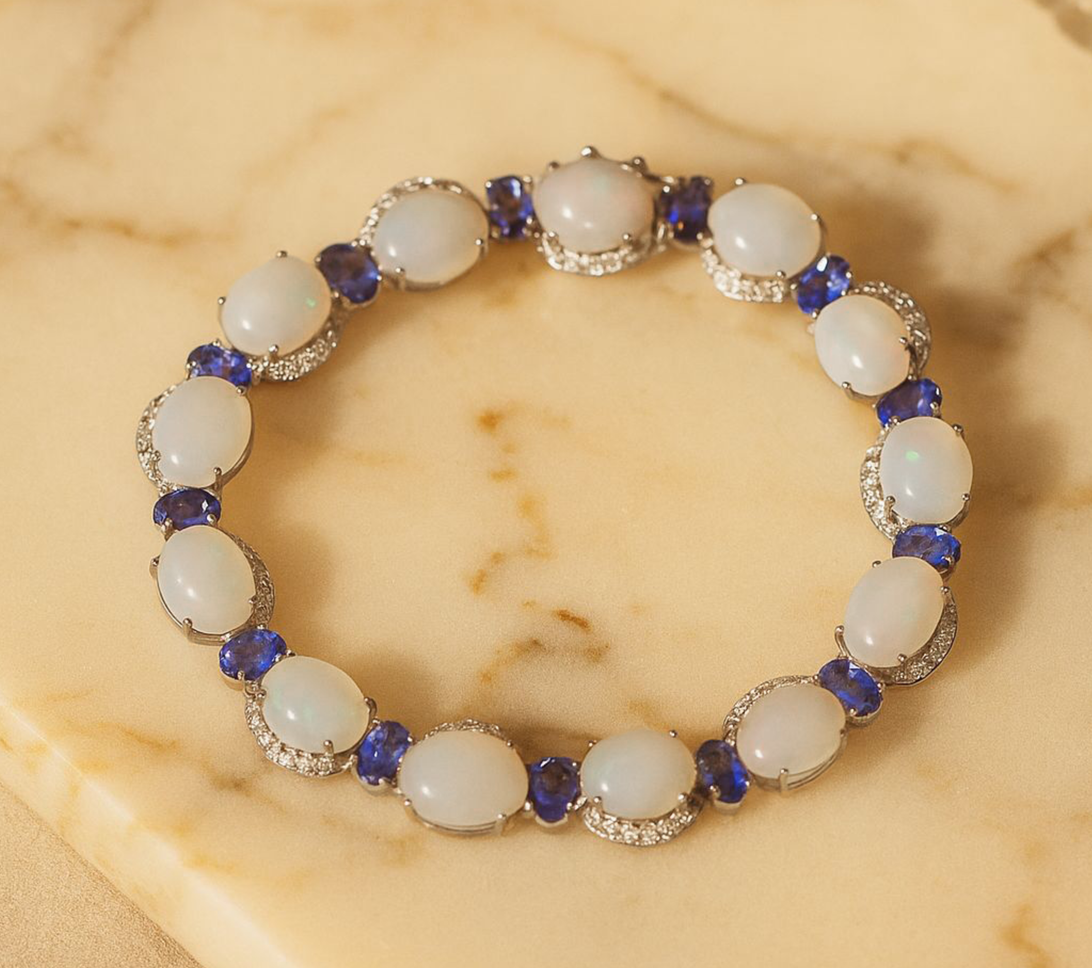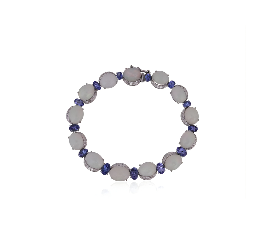 Ethereal and luminous, the Nuit Opale Bracelet captures the quiet magic of nightfall — the soft iridescence of opal, the deep celestial blue of tanzanite, and the refined brilliance of diamonds.