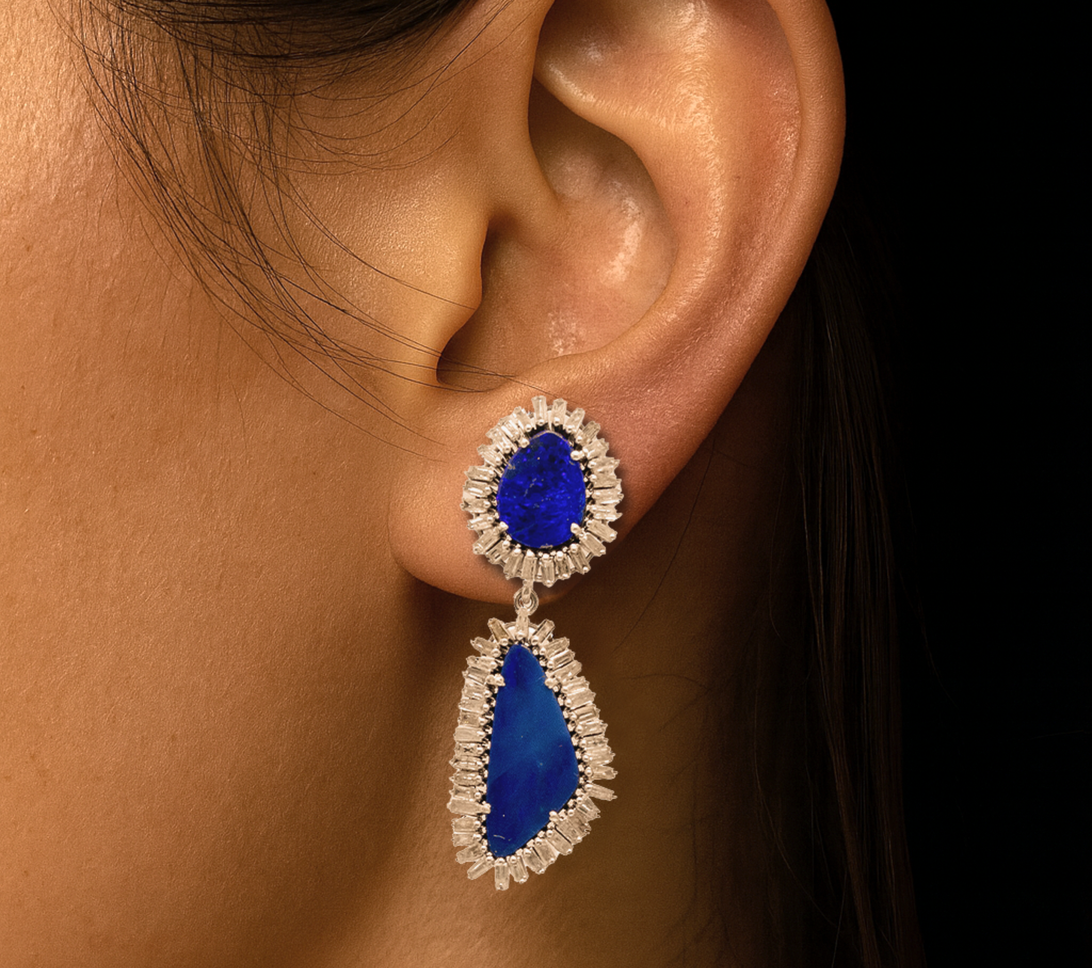Inspired by the moonlit reflections over Sydney’s coastline, the Opal & Diamond Luna Mare Earrings capture the serene beauty of the ocean at night. Each earring is crafted in 925 sterling silver, featuring radiant natural Australian opals encircled by a halo of fine-cut white diamonds, creating a luminous play of light and depth that feels both modern and timeless.