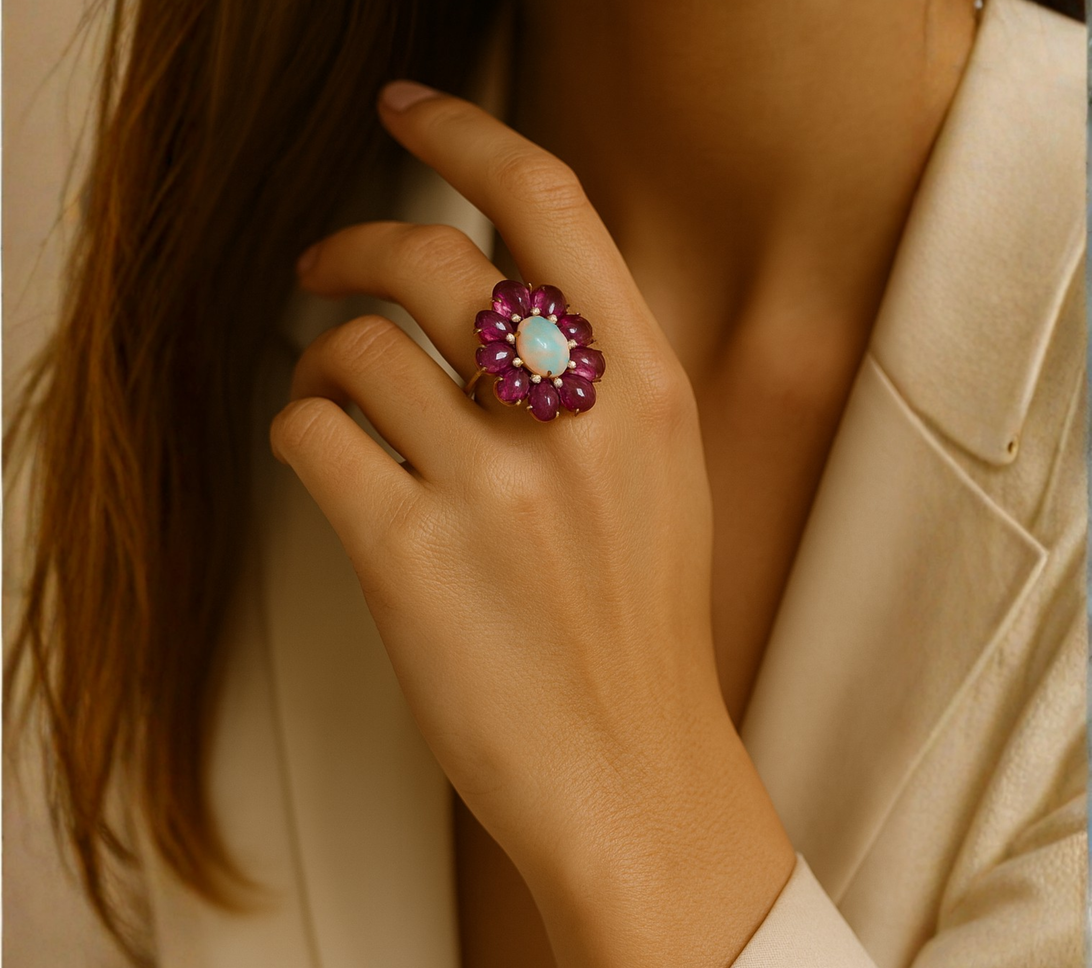 Opaline Blossom Ring