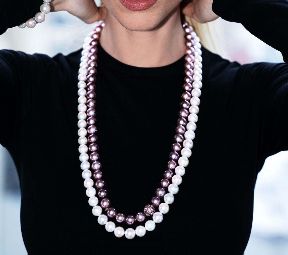 The Silken Dusk Tahitian Pearl Necklace captures the essence of understated elegance. Featuring radiant pearls (154.20 ct) in soft pink hues, this necklace is accentuated by a pavé-set silver sphere adorned with delicate pink sapphires (4.47 gms) and diamonds (2.32 ct). Each element is crafted to reflect light with graceful luminosity, creating a piece that feels both timeless and contemporary. Effortlessly chic, it’s a sophisticated adornment for both refined evenings and modern daywear.